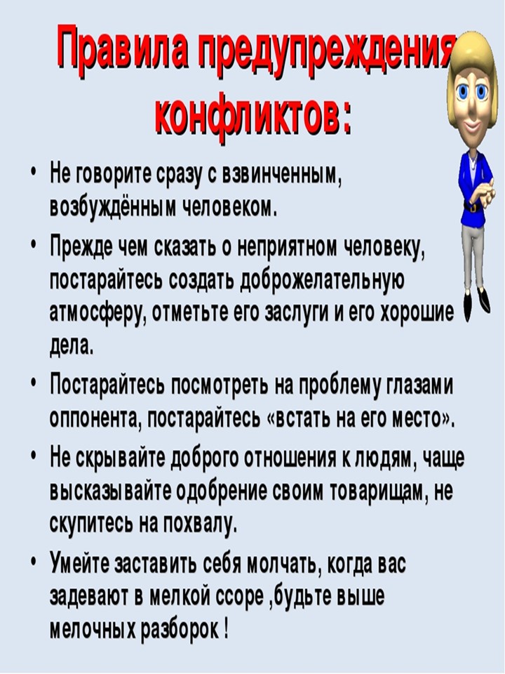 - снижение деструктивного влияния неизбежно возникающих конфликтов между участниками образовательных отношений;