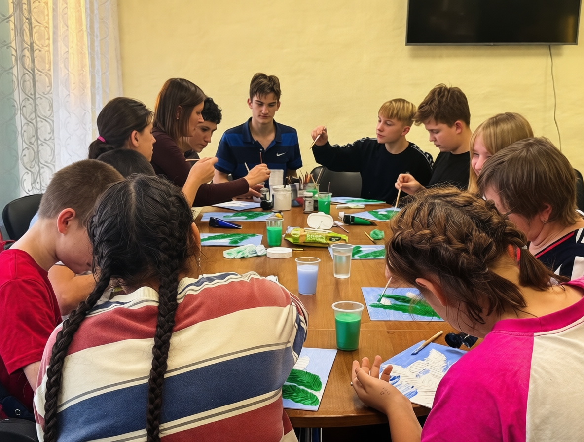 Ребята с огромным интересом погрузились в процесс. Под чутким руководством наставников они учились: подбирать гармоничные цветовые сочетания; работать с текстурными материалами; создавать объёмные элементы картины; воплощать собственные художественные задумки. В процессе творчества дети не только осваивали новые навыки, но и общались, делились идеями, поддерживали друг друга.